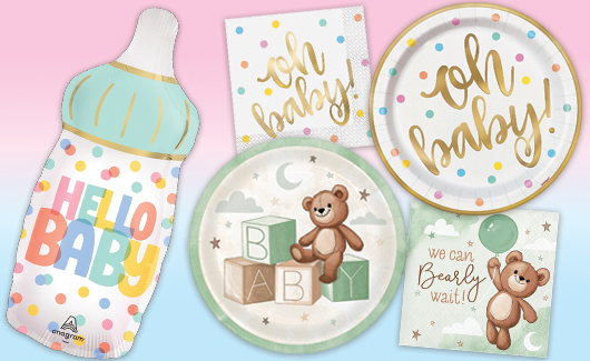 Celebrate the mommy-to-be with baby shower supplies in pinks, blues, and gender neutral designs. Or throw a gender reveal party and keep people guessing until the big moment. Either way, Party America has all the baby shower supplies you need from invitations, to banners, decor and tableware, plus fun games and favors for your guests to enjoy.